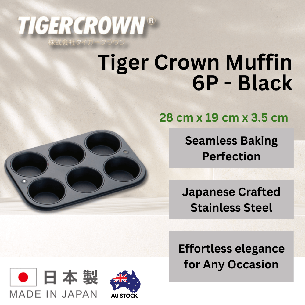 Elevate your baking prowess with the Tiger Crown Muffin 6P - Black. Crafted in Japan, it ensures perfect muffins with its durable construction and non-stick coating.