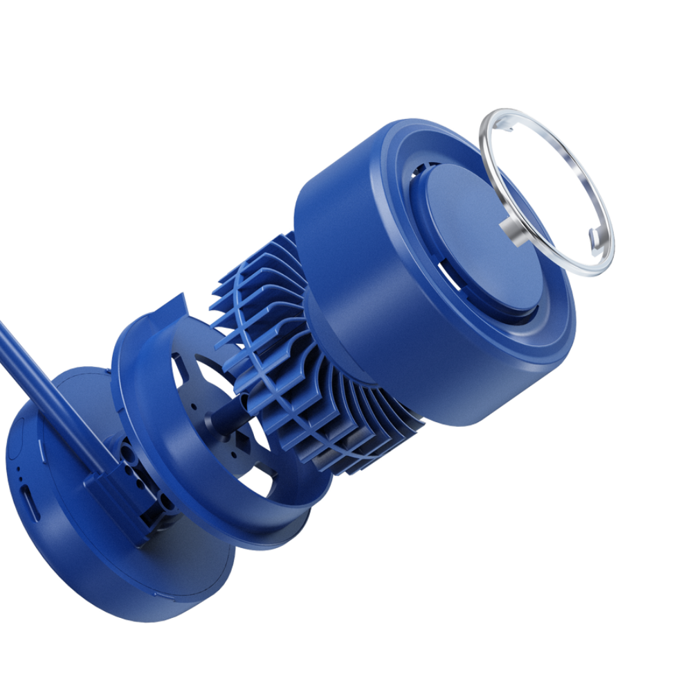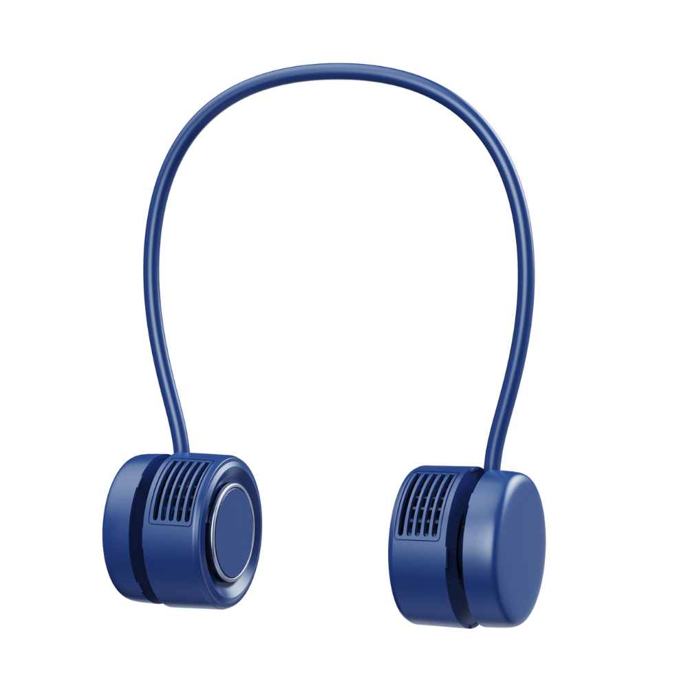 XYD Y25 Portable Hanging Neck Fan - Royal Blue keeps you cool and comfortable even in the hot seasons. Comfortably worn around your neck, this fan provides continuous cooling without occupying your hands. Powered by a built-in 1600mAh battery, this cordless neck fan provides long-lasting cooling without the need for constant recharging. Choose from 3 different speed levels to customize your cooling experience based on your comfort needs and the surrounding temperature. Enhance your cooling experience by adding a few drops of your favorite essential oil to the built-in aroma pad, combining refreshing airflow with pleasant scents. Compact and lightweight, this fan easily folds to fit into pockets or bags, making it the perfect portable cooling solution for on-the-go use.