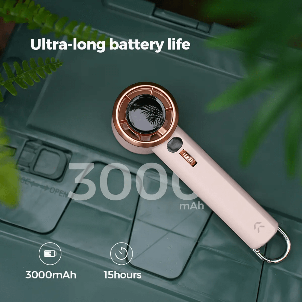 Designed with a high wind speed of 7m/s, the fan delivers a turbo-charged, cooling breeze, ideal for quickly refreshing you on hot days. - Large Capacity 3000mAh Battery