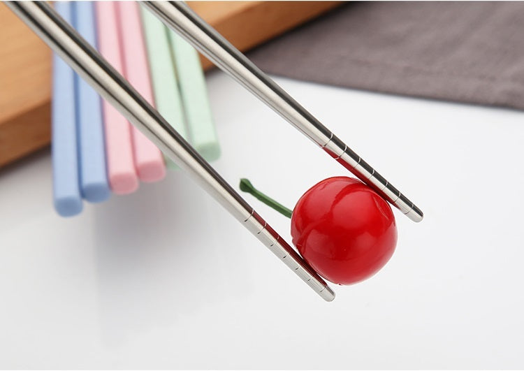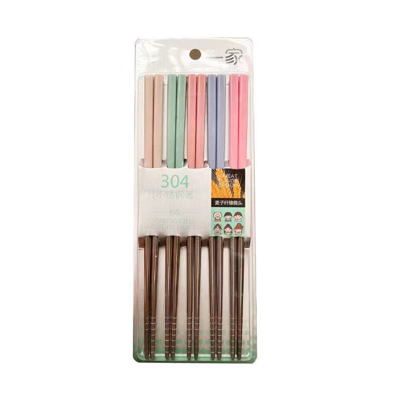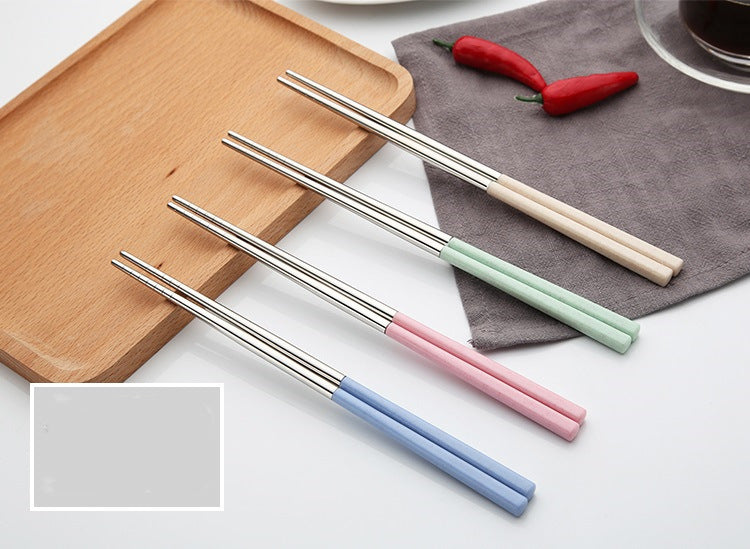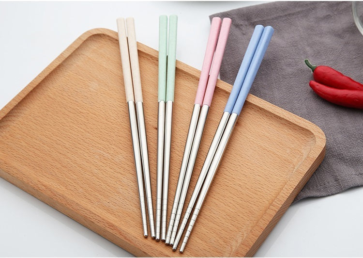 Wheat straw stainless steel chopsticks, novel and beautiful style.