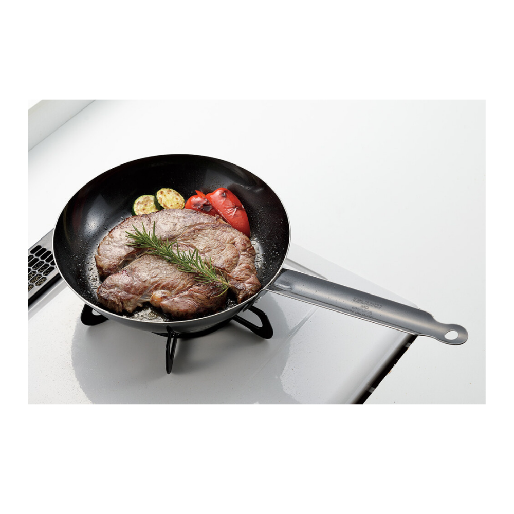 The Yokoyama Iron Frying Pan Black - 18cm, crafted with high-quality materials, is a versatile kitchen essential for efficient cooking and easy food release. It is perfect for individual portions or smaller dishes.
