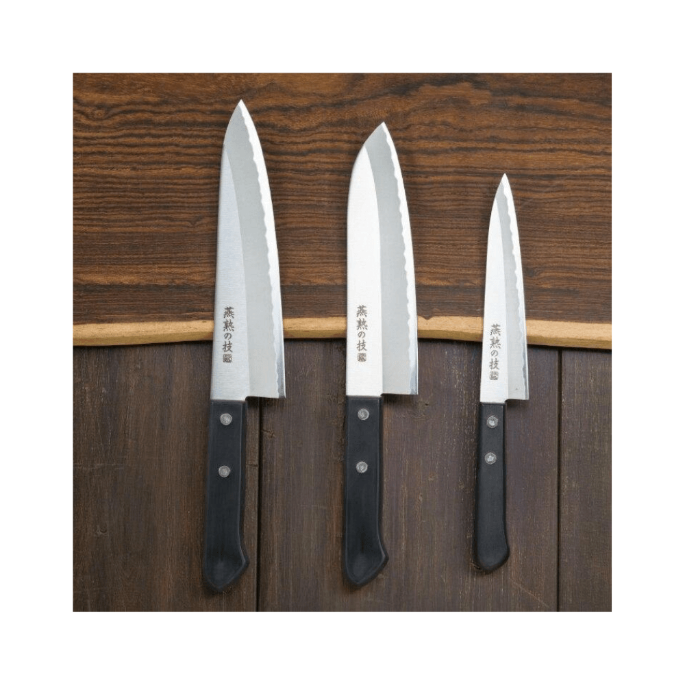 Yokoyama Kitchenware 3pcs Set Stainless Steel Santoku Knife - 16.5 cm & Gyuto Knife 18 cm & Petty Knife 13.5 cm