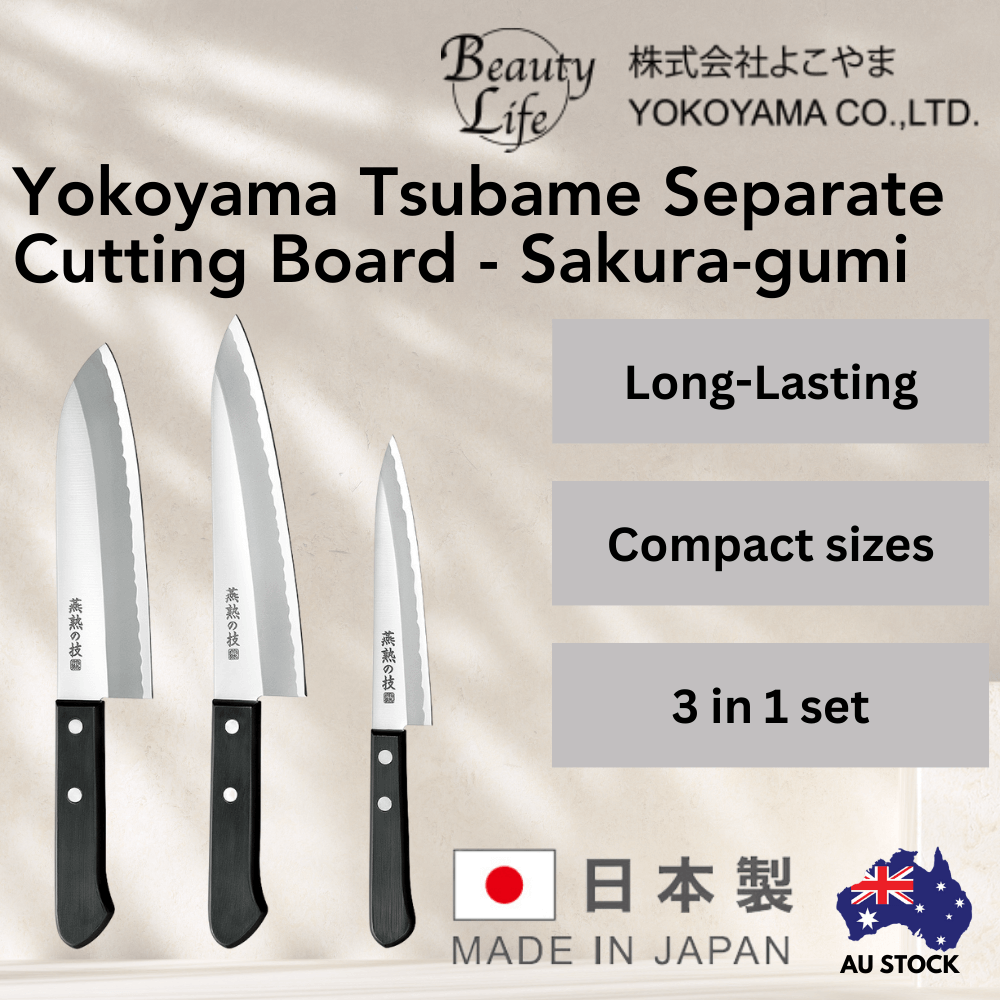 The Yokoyama Kitchenware 3pc Set Stainless Steel Santoku Knife - 16.5 cm & Gyuto Knife 18 cm & Petty Knife 13.5 cm comes with 3 razor-sharp knives which can be used to cut any food in every kitchen.