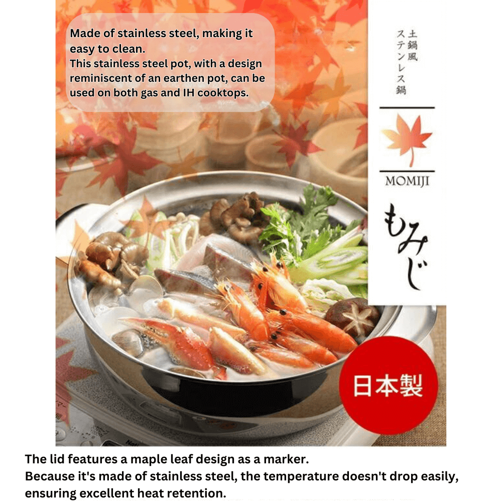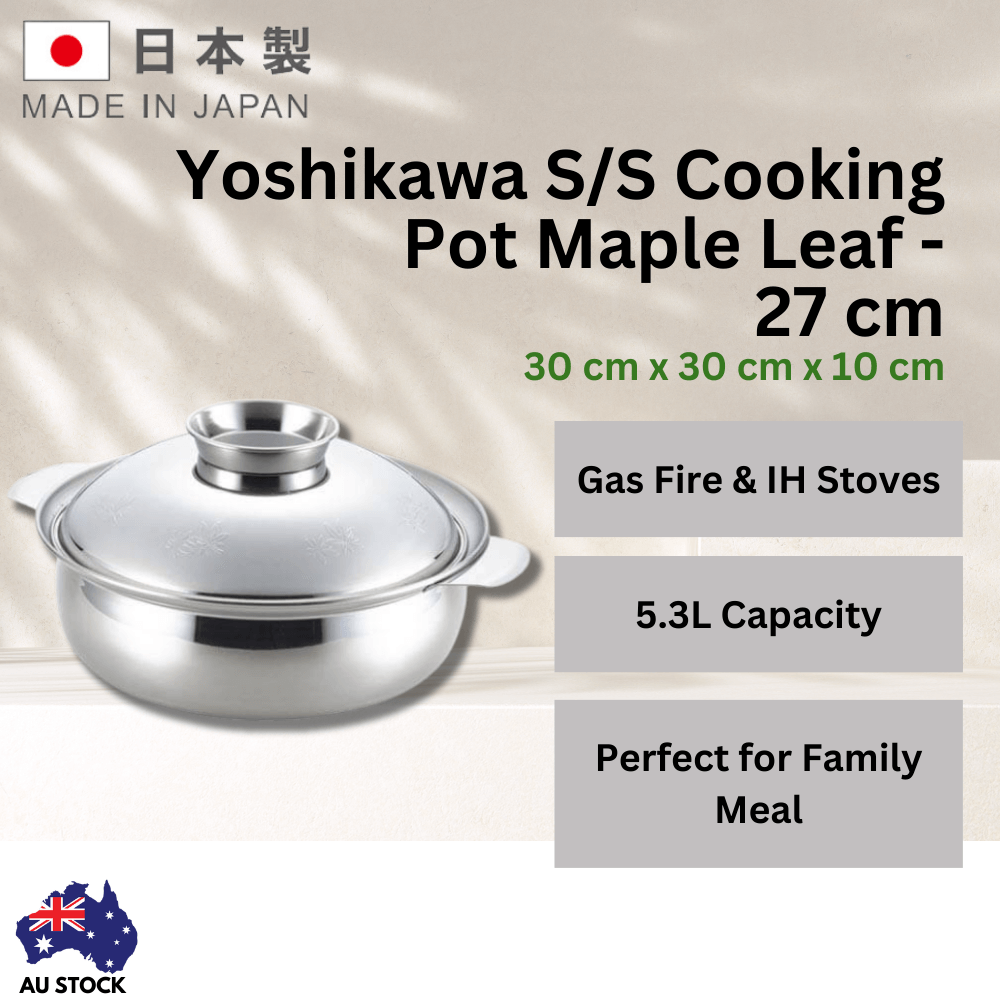 Yoshikawa S/S Cooking Pot Maple Leaf - 27 cm offers the perfect fusion of traditional Japanese craftsmanship and modern durability. Crafted with high-quality stainless steel, this cooking pot showcases an elegant maple leaf design while providing exceptional functionality. With a generous 5.3-liter capacity, it's designed to serve 4-5 people comfortably, making it an ideal choice for family meals and gatherings.