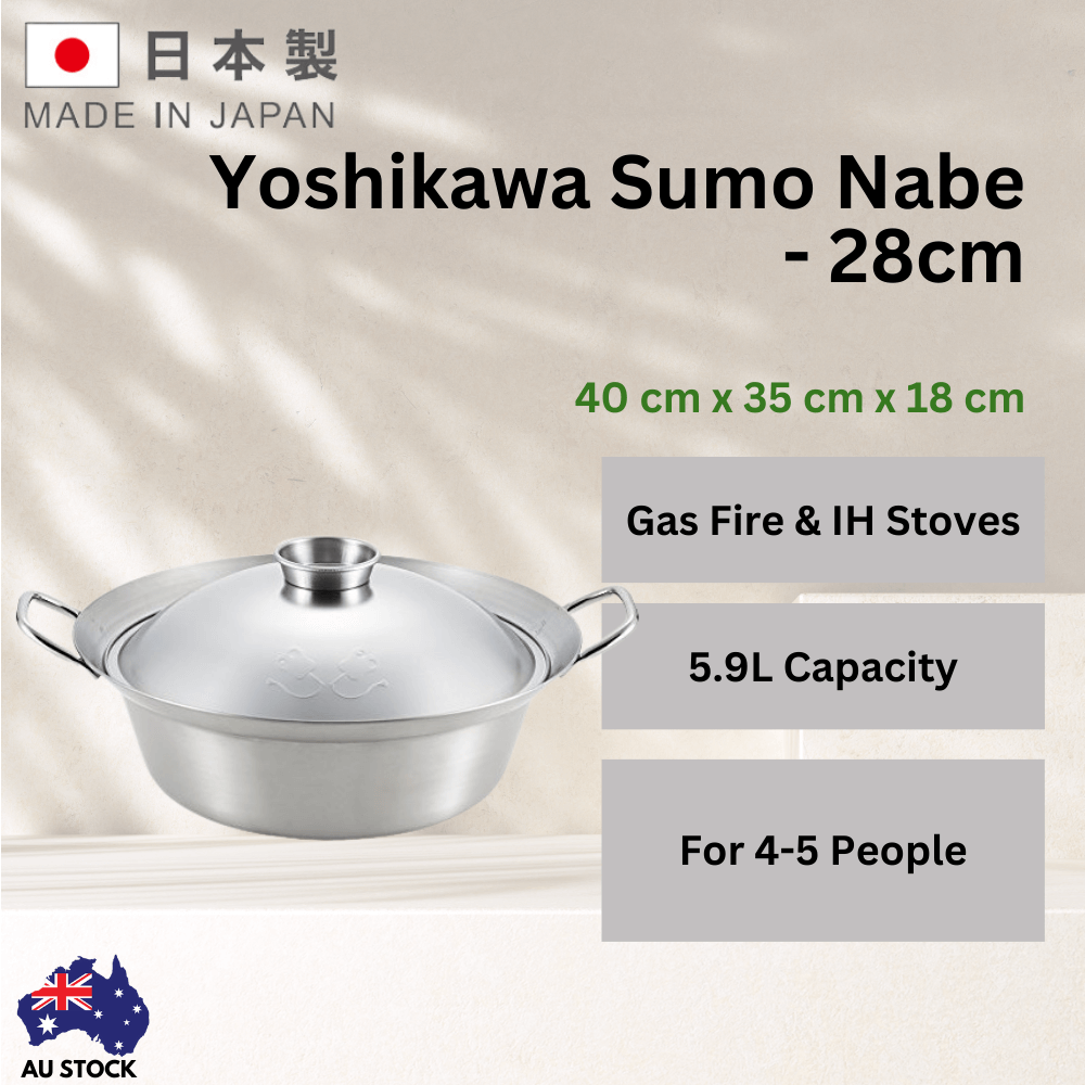 Yoshikawa Sumo Nabe - 28cm: Discover culinary mastery with the Yoshikawa Sumo Nabe - 28cm. Crafted from resilient stainless steel, this pot is IH compatible and features a sophisticated cannon-white pattern lid. Made in Japan, it embodies authenticity and quality, seamlessly merging traditional craftsmanship with modern functionality. Elevate your cooking endeavors with this tabletop essential, designed to bring out the best in your chanko nabe and cater to your culinary passions with ease and style.