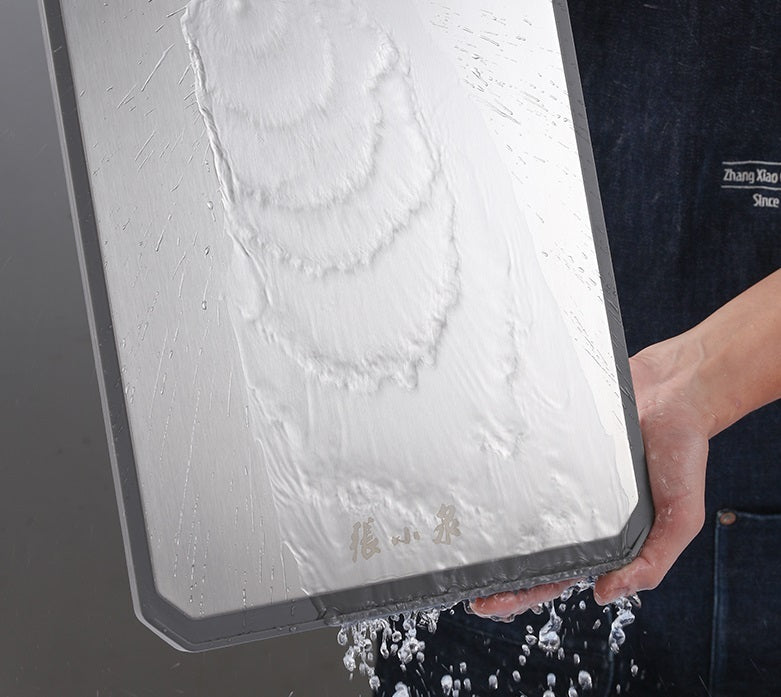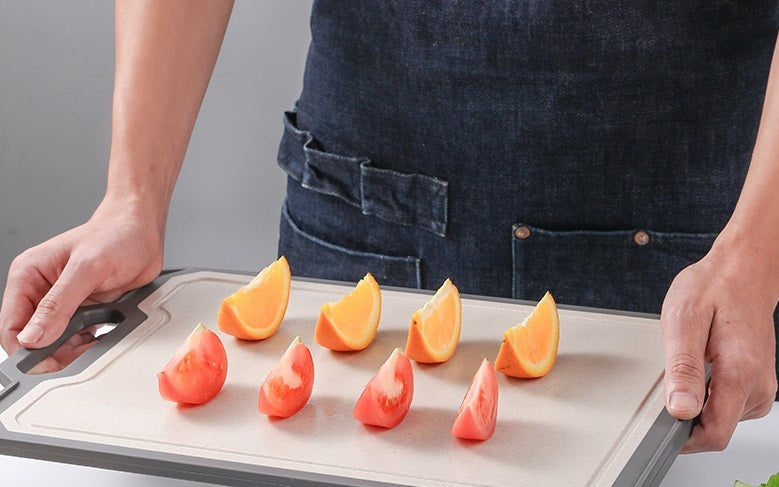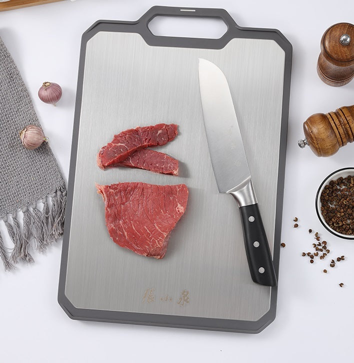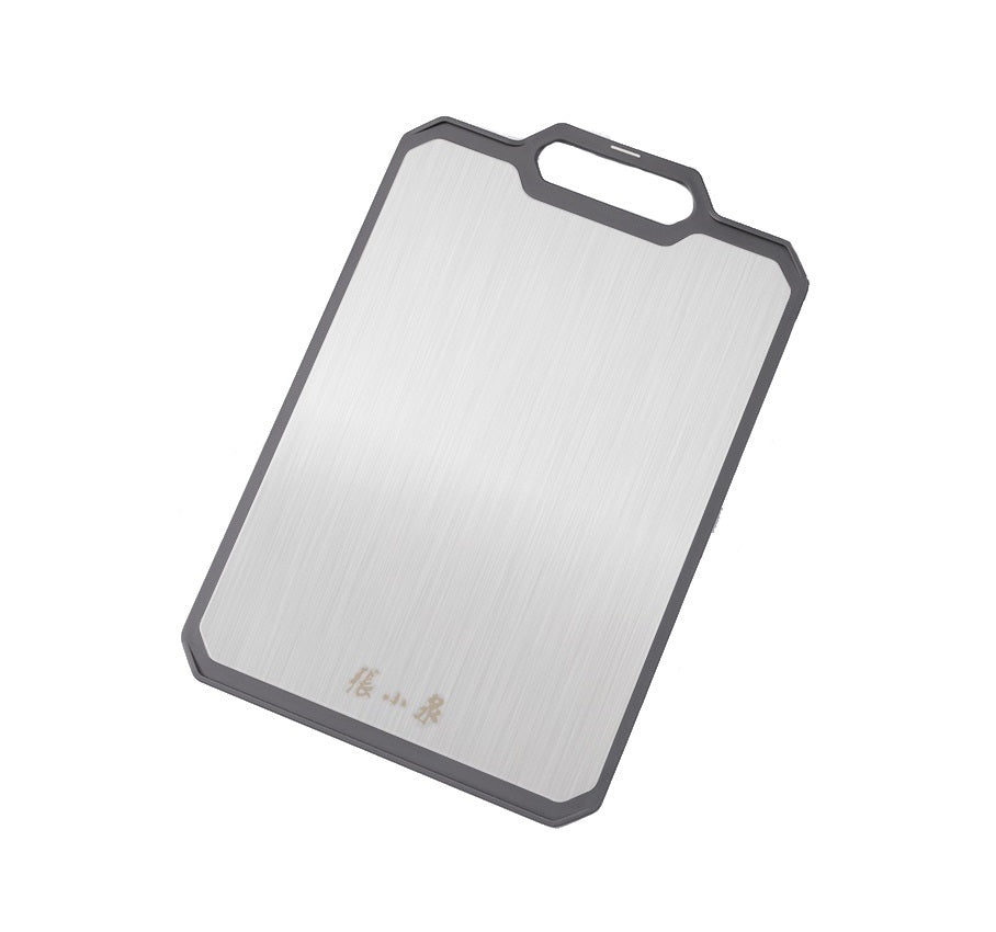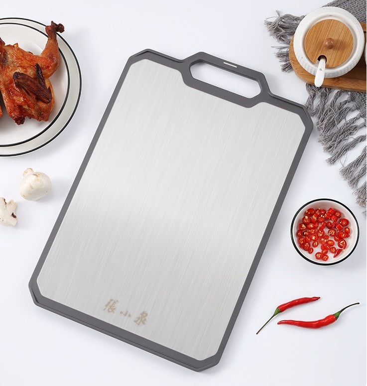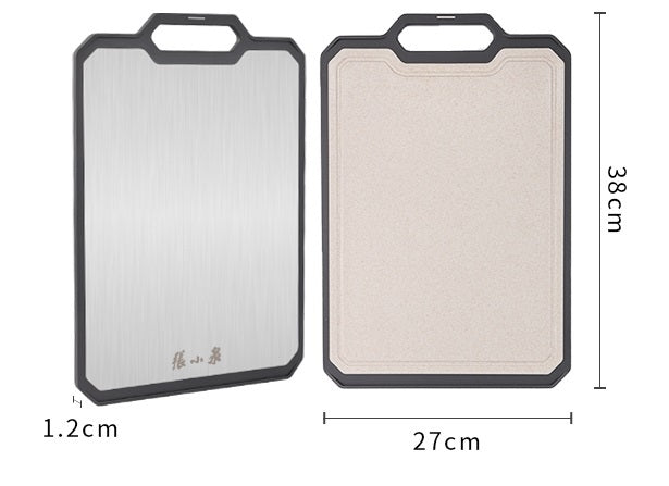This cutting board has two sides to ensure proper cutting surfaces. One side is made of Original ecological grain fiber, it is sutiable for cutting fruits, vegetables, and pastries. This side is not easy to breed bacteria, more suitable for direct contact with ingredients, healthy and hygienic. The other side is made of premium stainless steel which is good for cutting different meats. With hanging hole, you can anywhere you want and it is easier to dry the board.