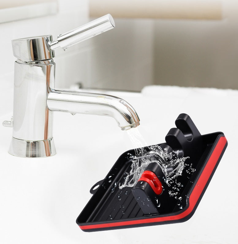 - The shelf has a hanging hole for storage on a kitchen hook