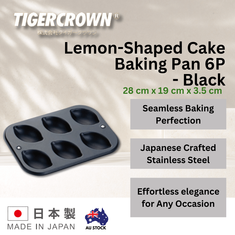 Elevate your baking with the Tiger Crown Lemon-Shaped Cake Baking Pan 6P - Black. Crafted in Japan, it ensures precision and durability for delightful lemon-inspired creations.